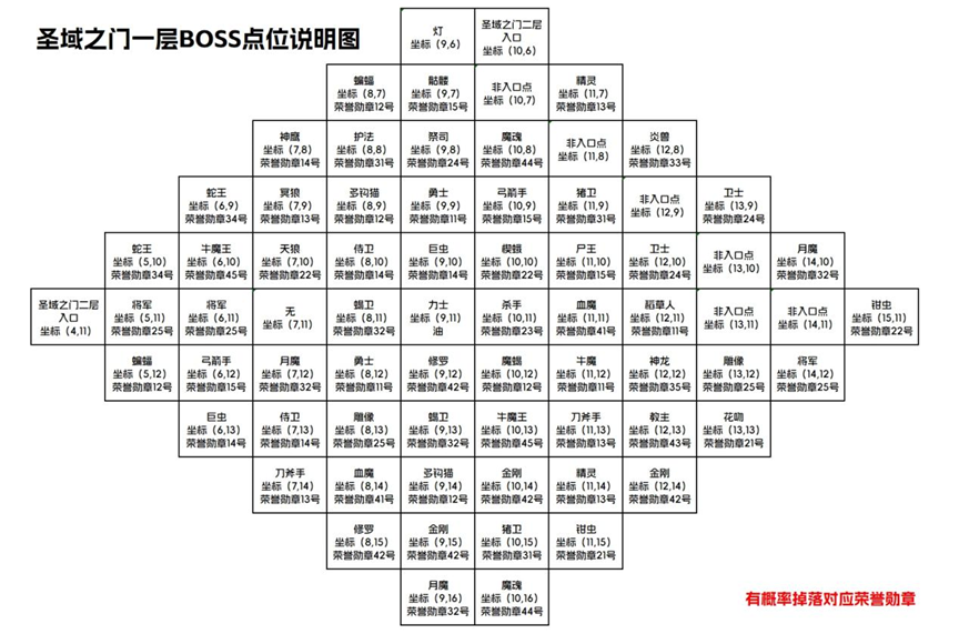 (圣域之门一层对应的BOSS点位说明图)