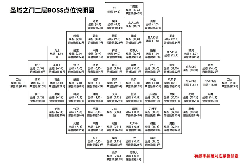 (圣域之门二层对应的BOSS点位说明图)