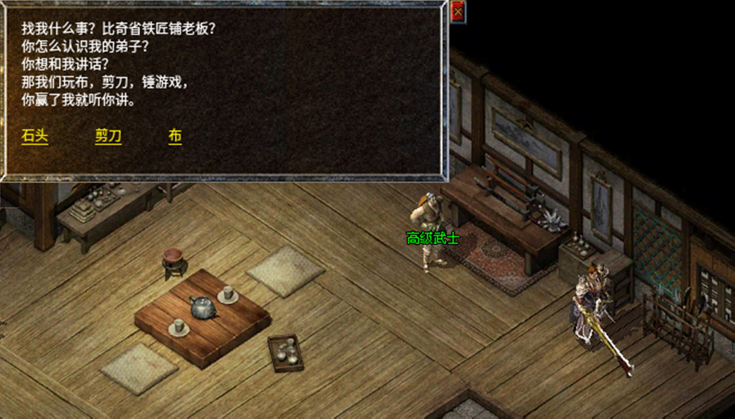 6、和高级武士完成猜拳游戏,只有赢了高级武士才可以继续下面的步骤,如果猜拳失败则需要重新返回任务原点重新开始。