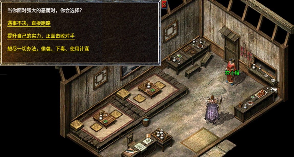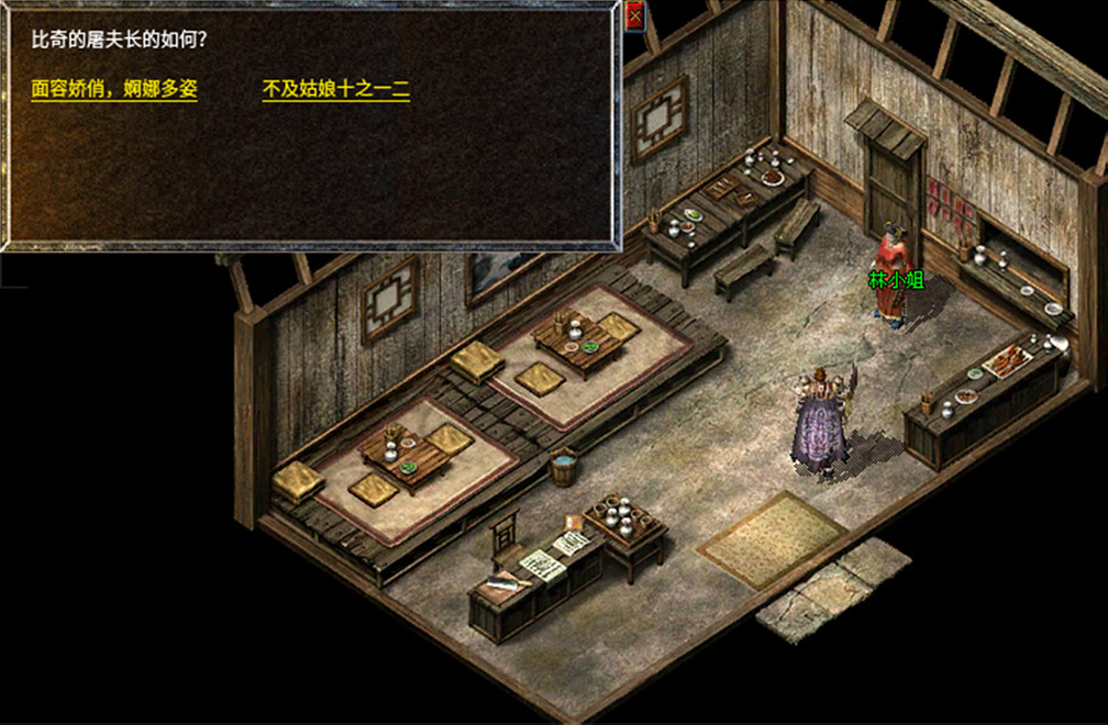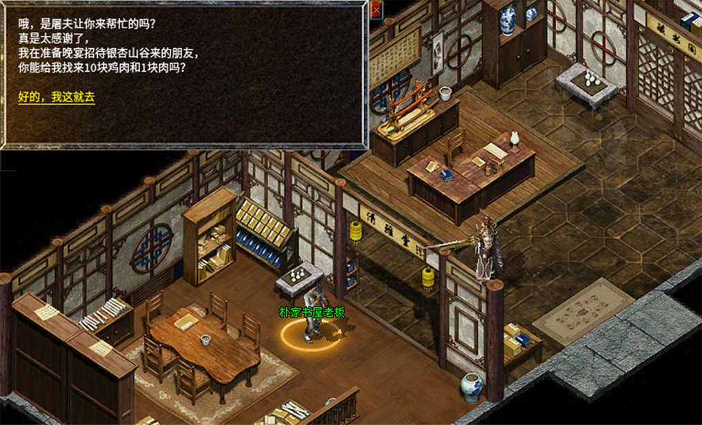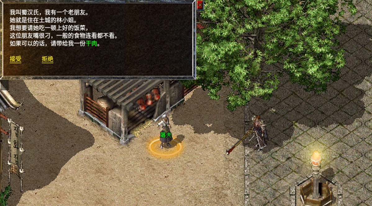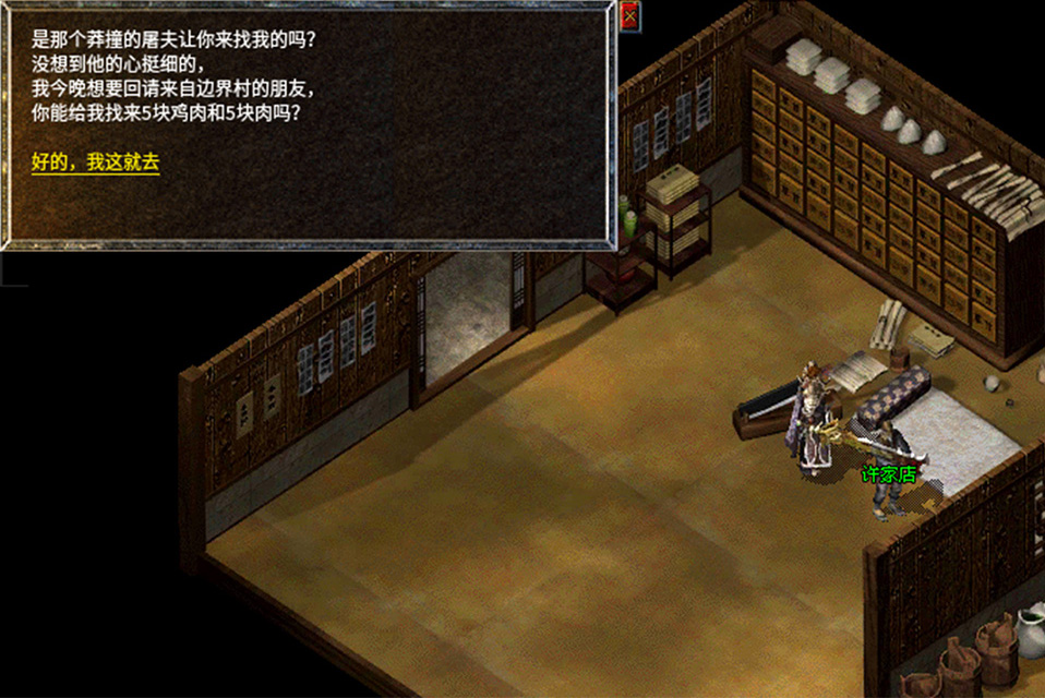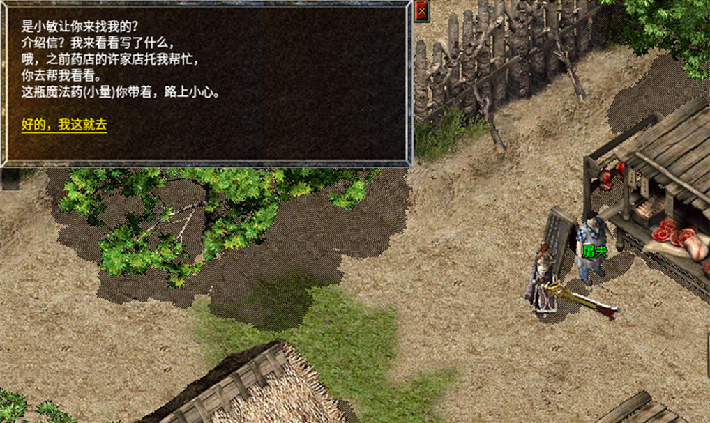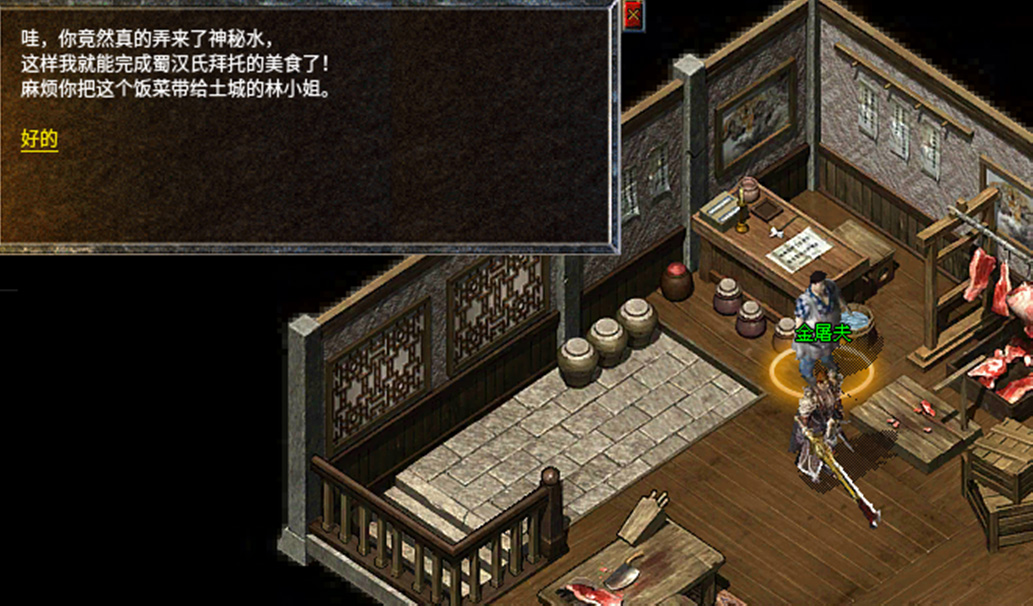 8、拿着老人给的神秘水回去找金屠夫,金屠夫做好蜀汉氏委托的美食,继续前往盟重找到NPC林小姐送给她美食。
