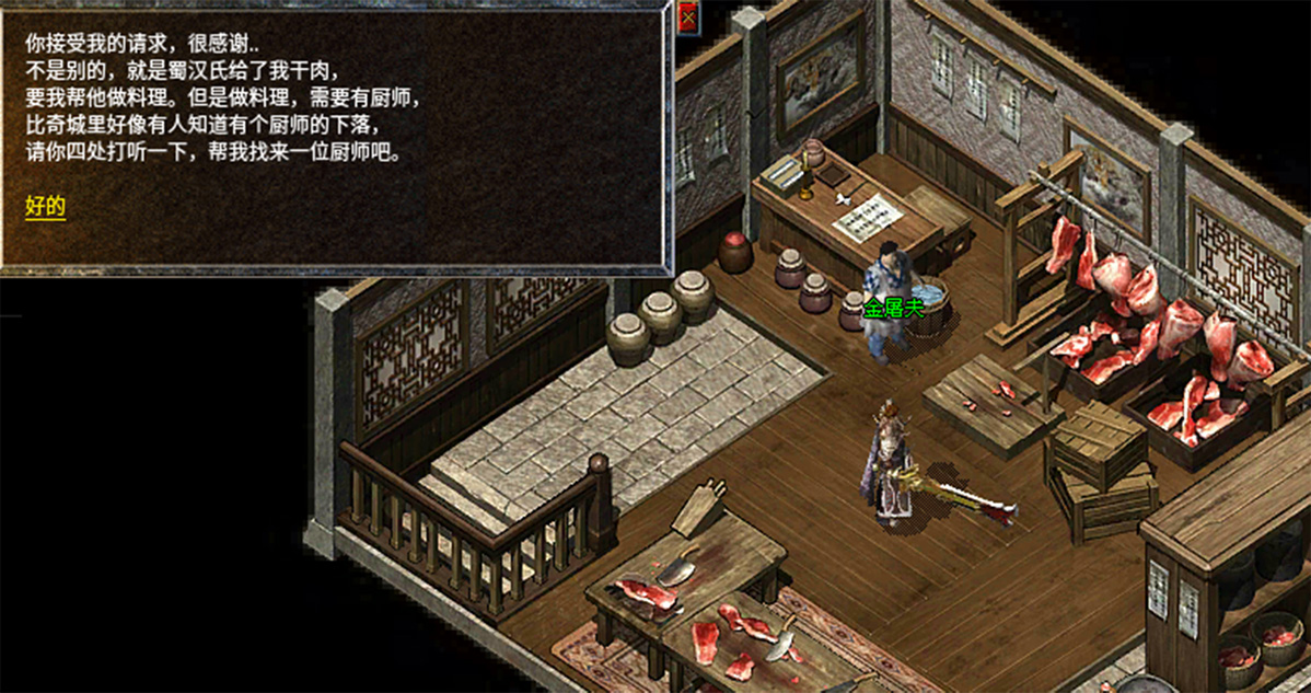 4、向比奇城的金屠夫讨要一碗鲜肉汤,带回给蔡氏。