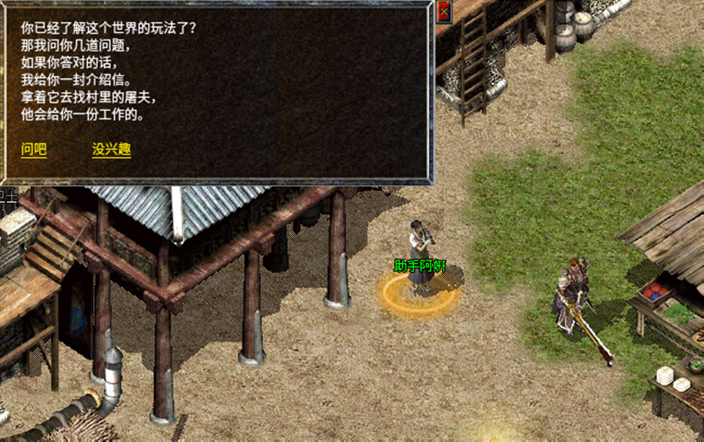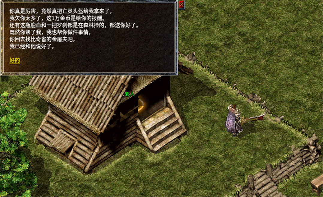 5、给老人亡灵头盔,下一步和比奇省的金屠夫处进行交谈。