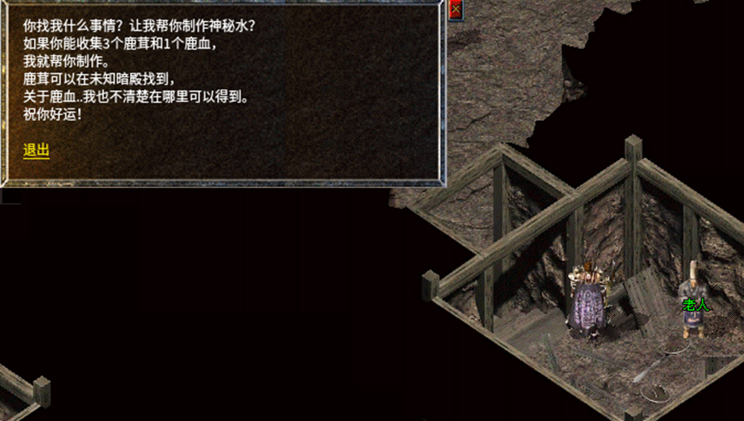 8、在桃源之门处找到NPC神秘老人,用赤月恶魔油兑换血剑碎块。
