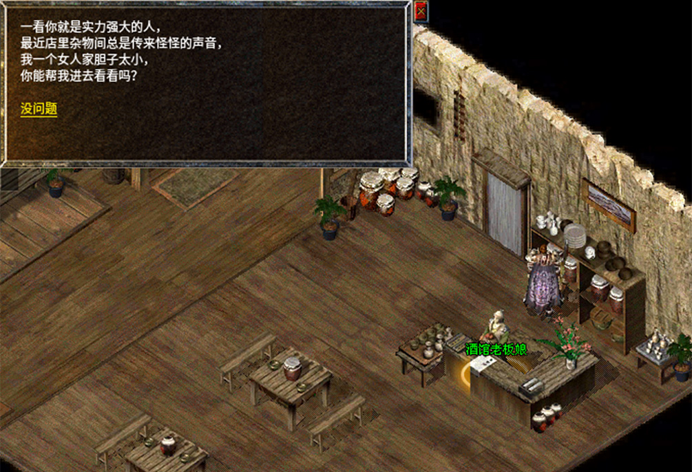 1、前往盟重省卧龙酒馆处找NPC酒馆老板娘接取任务。