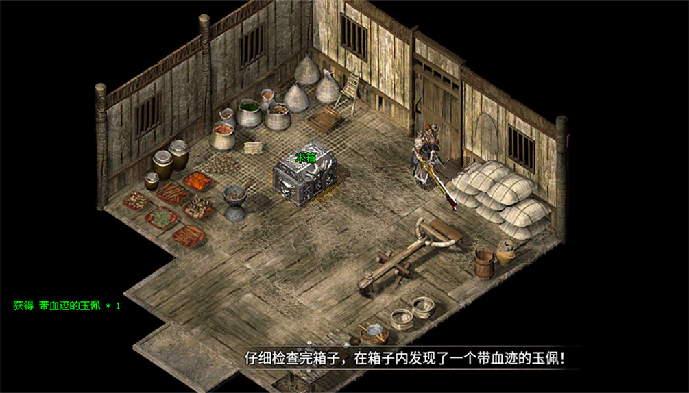 3、翻找木箱找到任务道具,带血迹的玉佩。