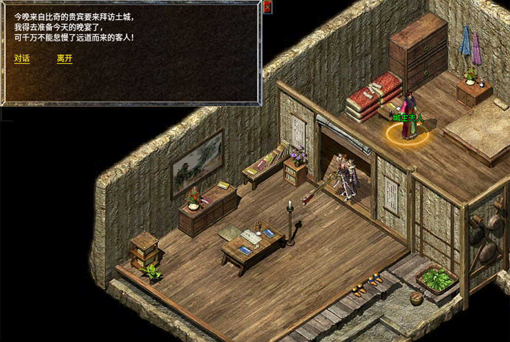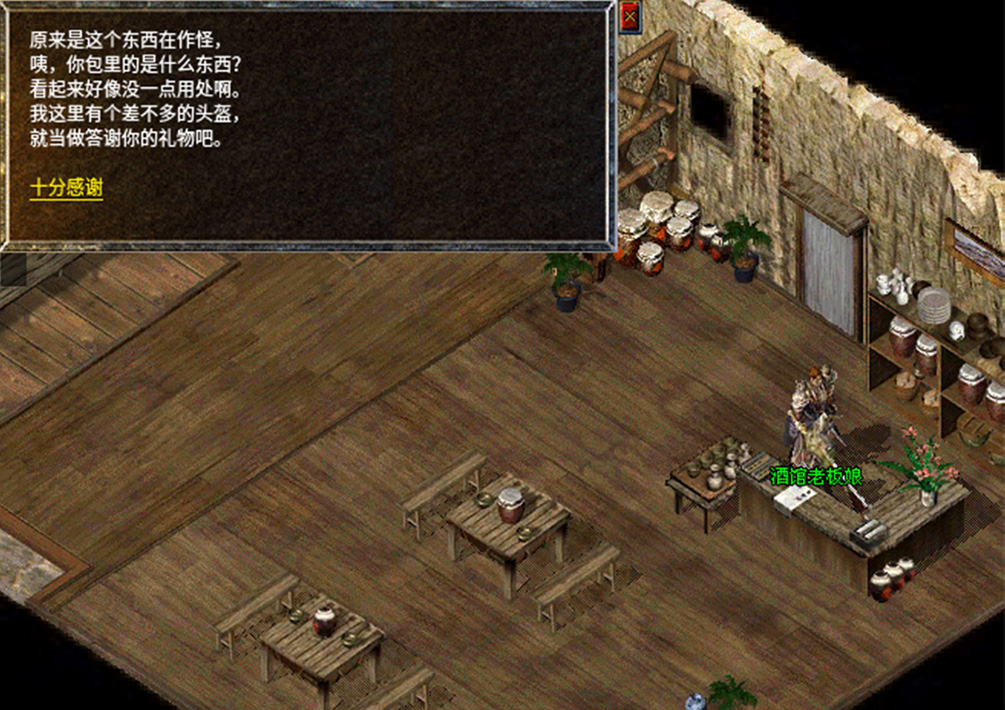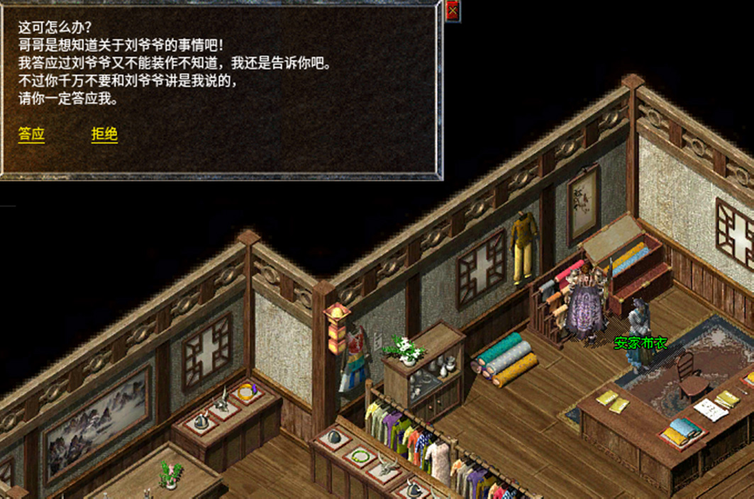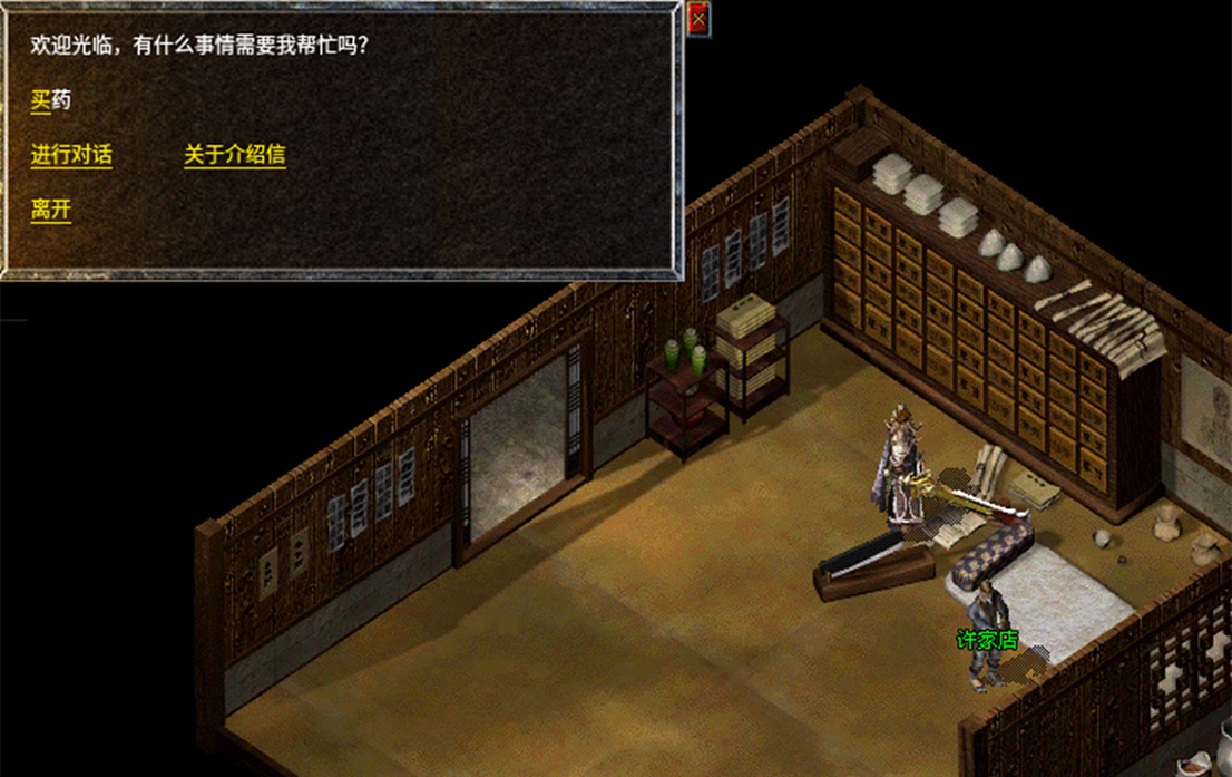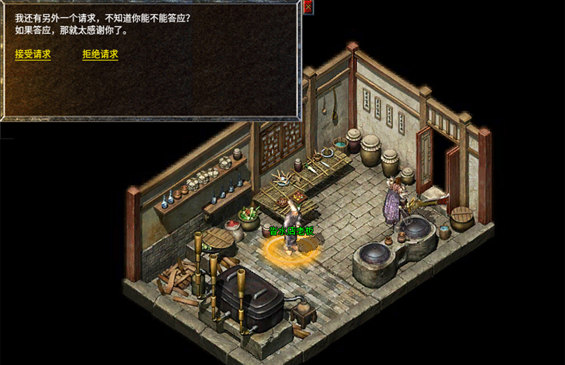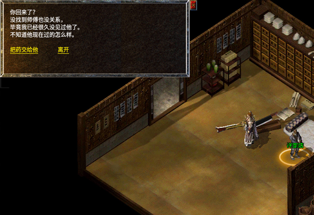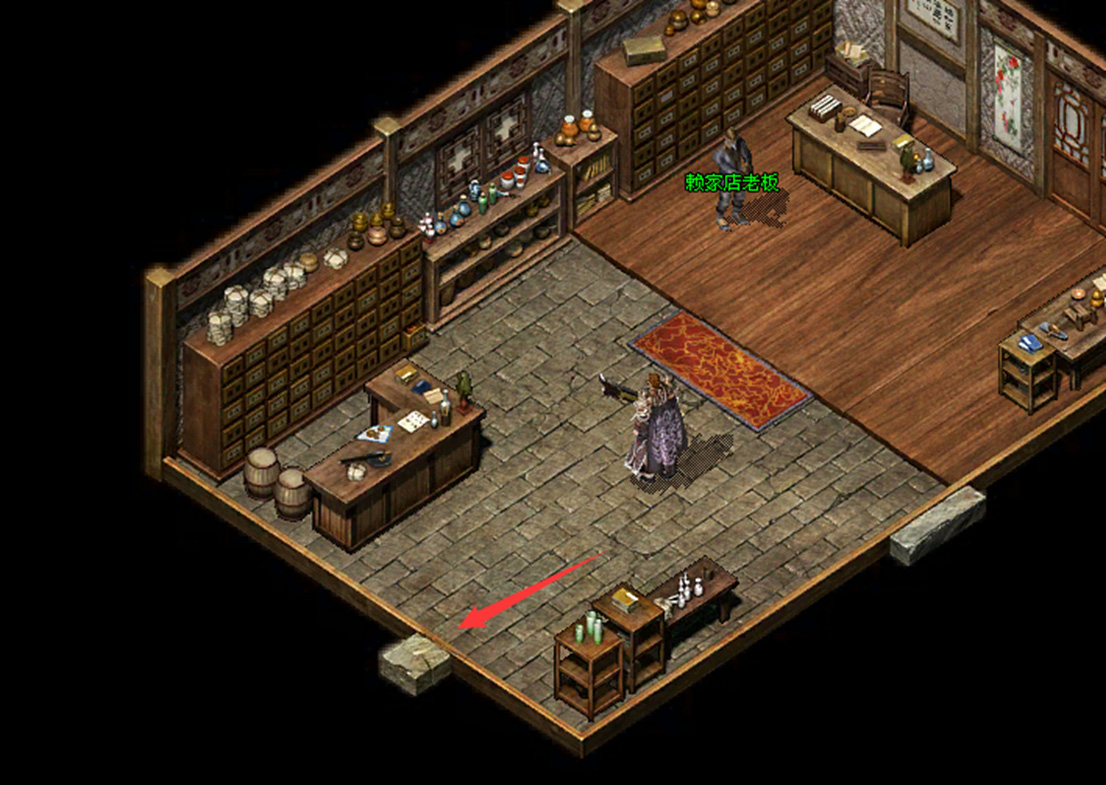 1、去比奇药店侧室找到NPC沓水店老板。