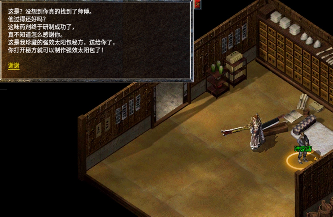 4、带着药剂师的信去银杏村许家店找NPC继续对话,传达信件。