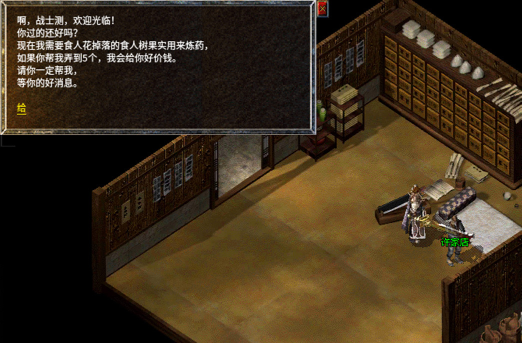 5、帮助许家店老板寻找5个食人树果实,有小概率获得许中医的药,继续任务。