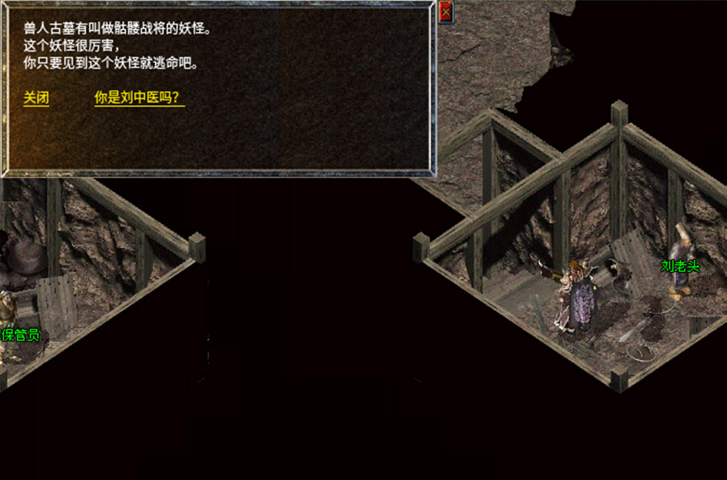 9、去兽人古墓找到NPC刘老头,给他许中医的药,继续任务。