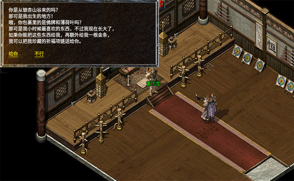 8、前往飞天武术馆研究院,找到NPC黄飞龙,需要提前准备一根金条。
