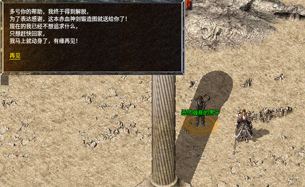 9、前往盟重找到恶鬼缠身的男子,寻问事情原因并完成他的委托。