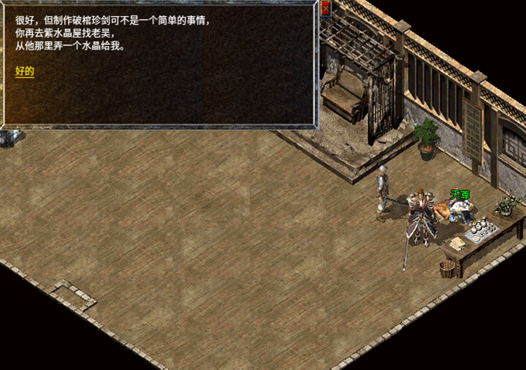 3、提交蜘蛛线后,需要前往紫水晶屋找NPC老吴寻找水晶。