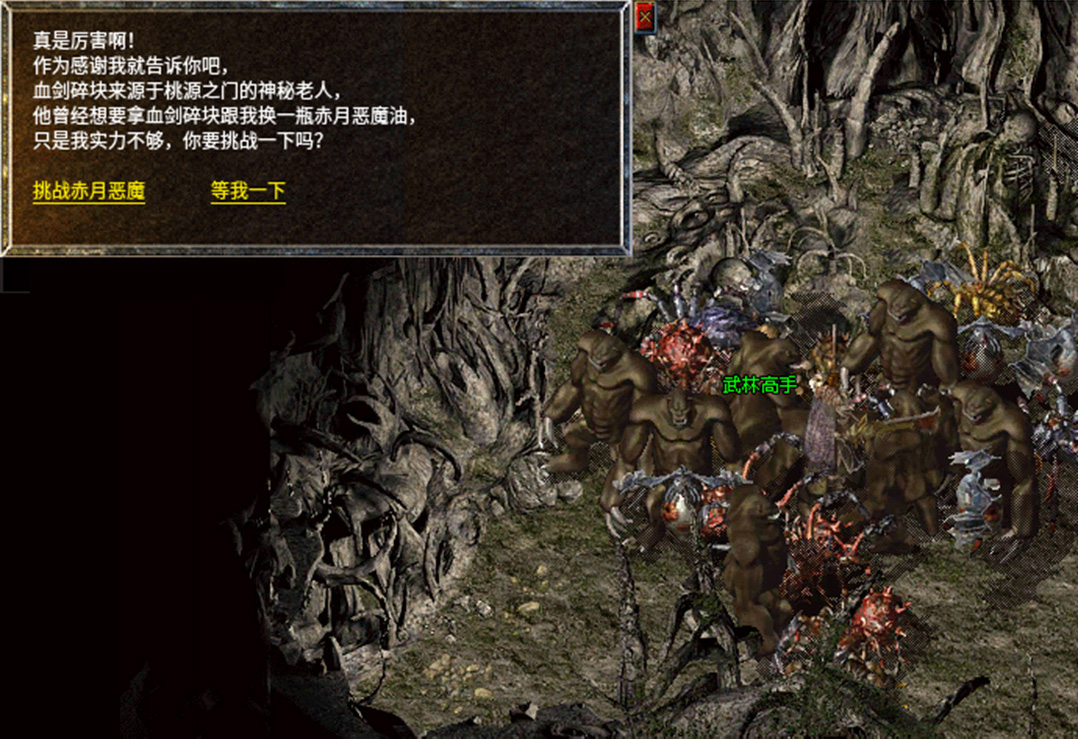 6、来到赤月地图的赤月魔穴,找到里面的NPC武林高手,打探血剑碎片的消息。