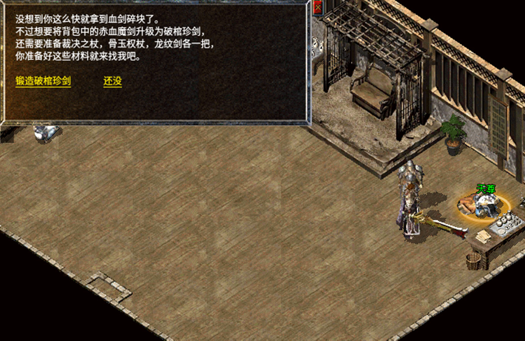 1、赤血魔剑需要前往石墓七层后的桃源之门,找到NPC合成师进行锻造。