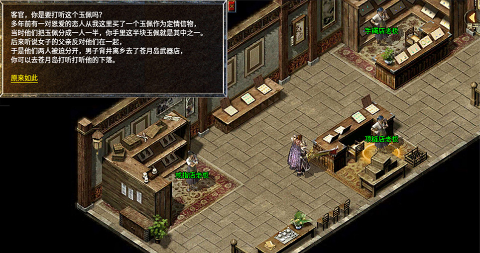 4、将半块玉佩拿给沙巴克项链店老板查看,继续打听任务。