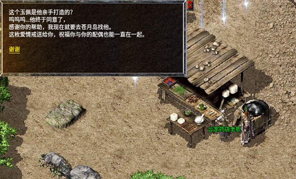9、将完整的玉佩送给沃玛森林药店老板,最终完成爱情戒任务,获得爱情戒一枚。