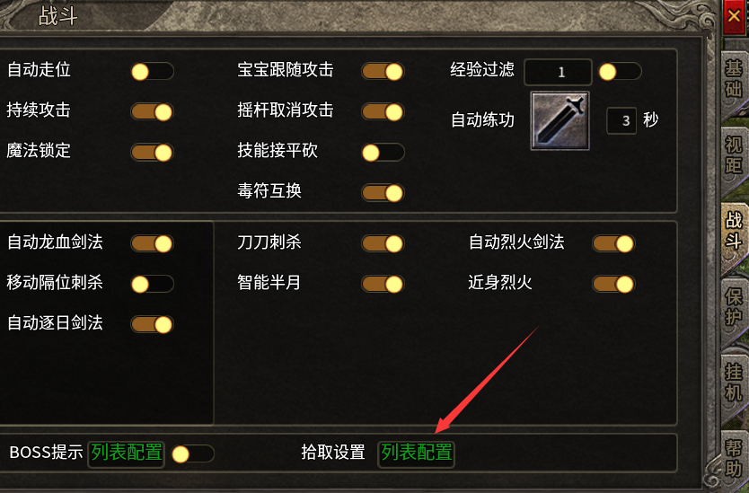 【小技巧】在内挂-战斗-拾取中,可以设置挂机时需要捡取的装备道具。