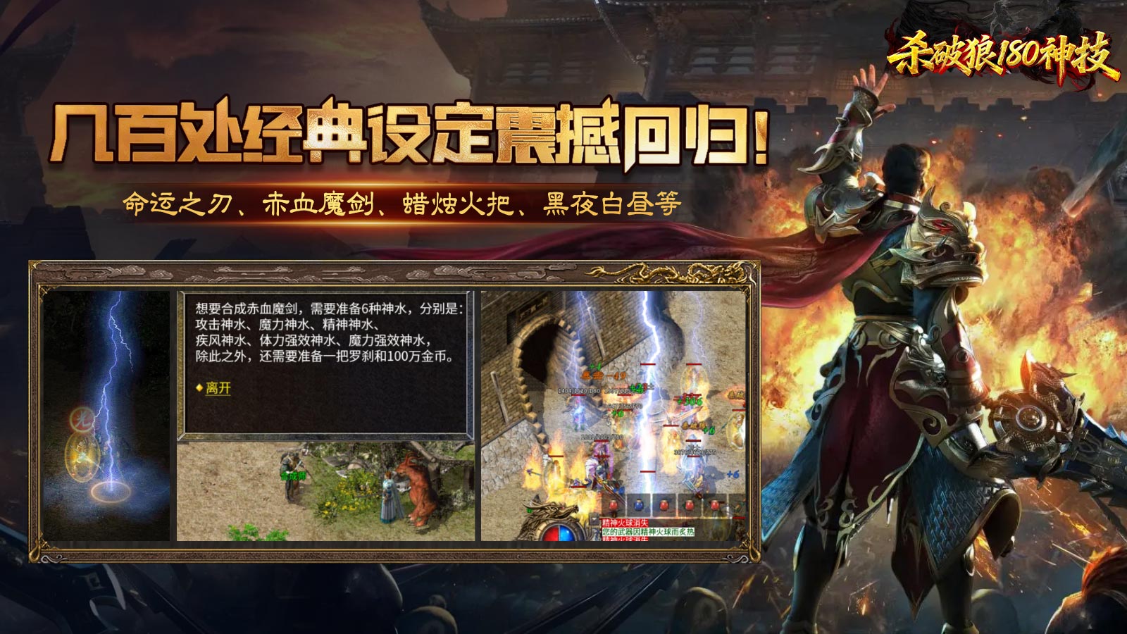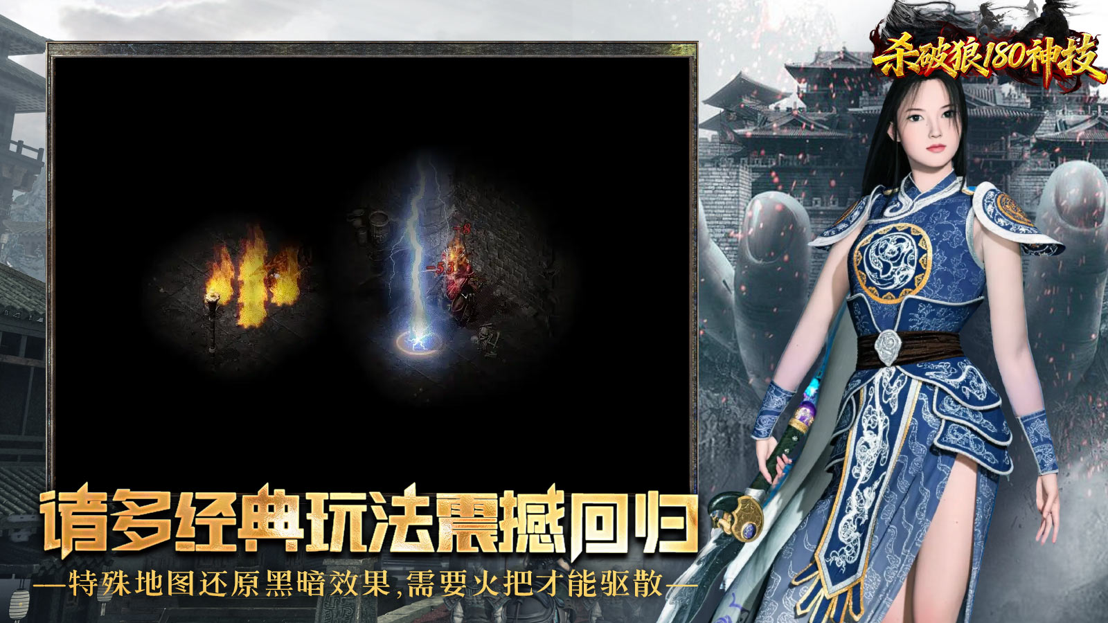 4、六大重装地图、圣域、蜡烛火把、黑夜白昼、地下夺宝、火龙神殿等诸多经典玩法全部还原!